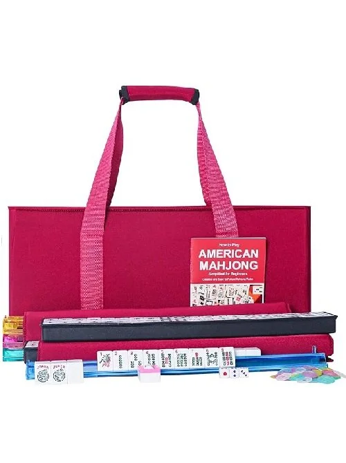 This American Mahjong set has all the accessories you need for your Mahjong game: 166 tiles, 3 dice, 4 tile racks with pushers, 100 chips, 1 wind indicator and a clear American Mahjong instruction manual, suitable for mahjong beginners as well.