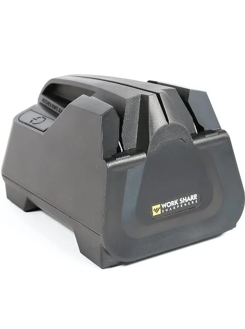 The Work Sharp E2 sharpener is a fully guided sharpener that automates the sharpening of your knives for an even angle.